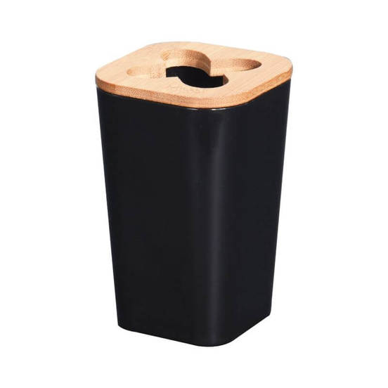 Свободностояща чаша за четки и паста за зъби. Чашата е произведена от бамбук и PVC с висока плътност.