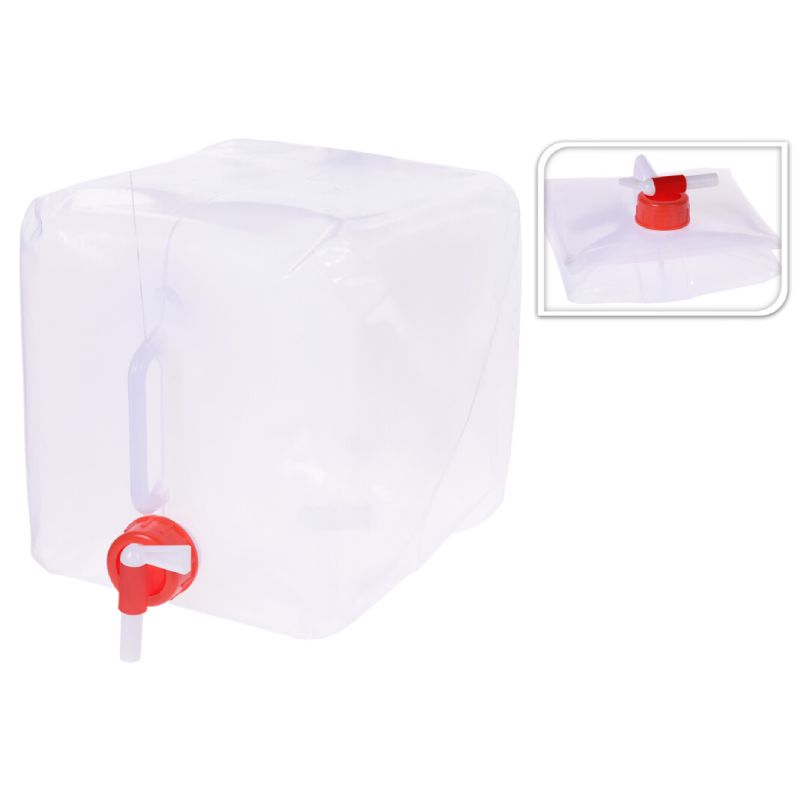 Туристически бидон за съхранение на вода. Бидонът е с вместимост 5 литра. Снабден е с канелка, както и с удобна дръжка. Туристическият бидон е произведен от сертифициран и мек PVC материал, безопасен за съхранение на течности.