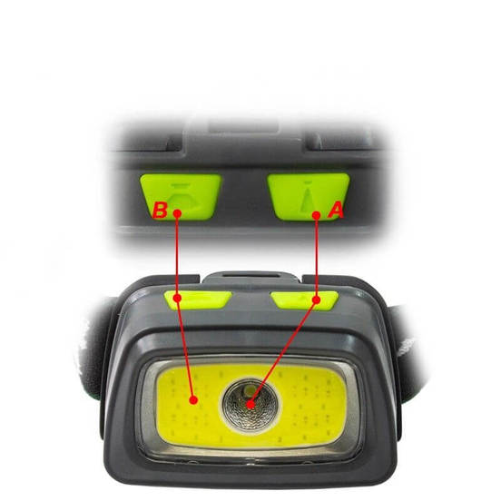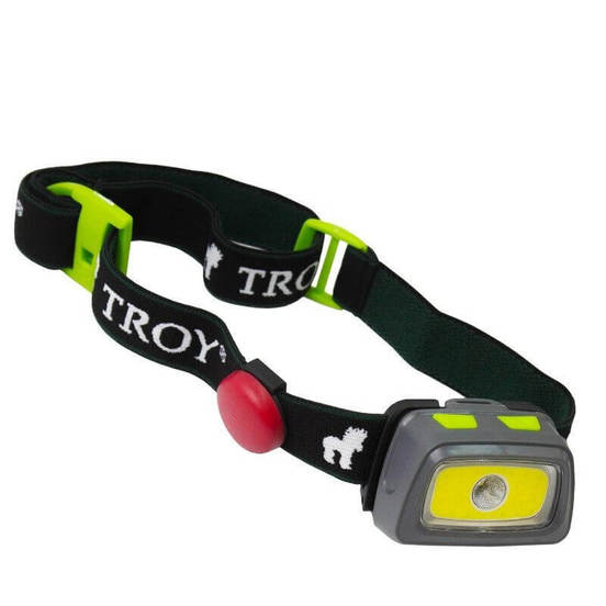 Челник TROY с 3 броя светодиодни лампи и добър светлинен поток - 330 lm. Обхваща разстояние до 10 метра. Предните две лампи на челника са с два отделни бутона, като единия контролира външната LED лампа, а другия контролира външната и централната LED лампа. Външната лампа може да свети в бял, зелен или червен цвят. Третата задна лампа има два режима на работа - светене в червено и мигане в червено.