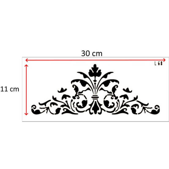 Шаблон за декорация на стени, тавани, мебели и други с различни видове бои, спрейове и декоративни мазилки. Шаблонът е произведен от висококачествена еластична пластмаса с дебелина 0.20 мм. Шаблонът за декорации е предназначен за многократна употреба.