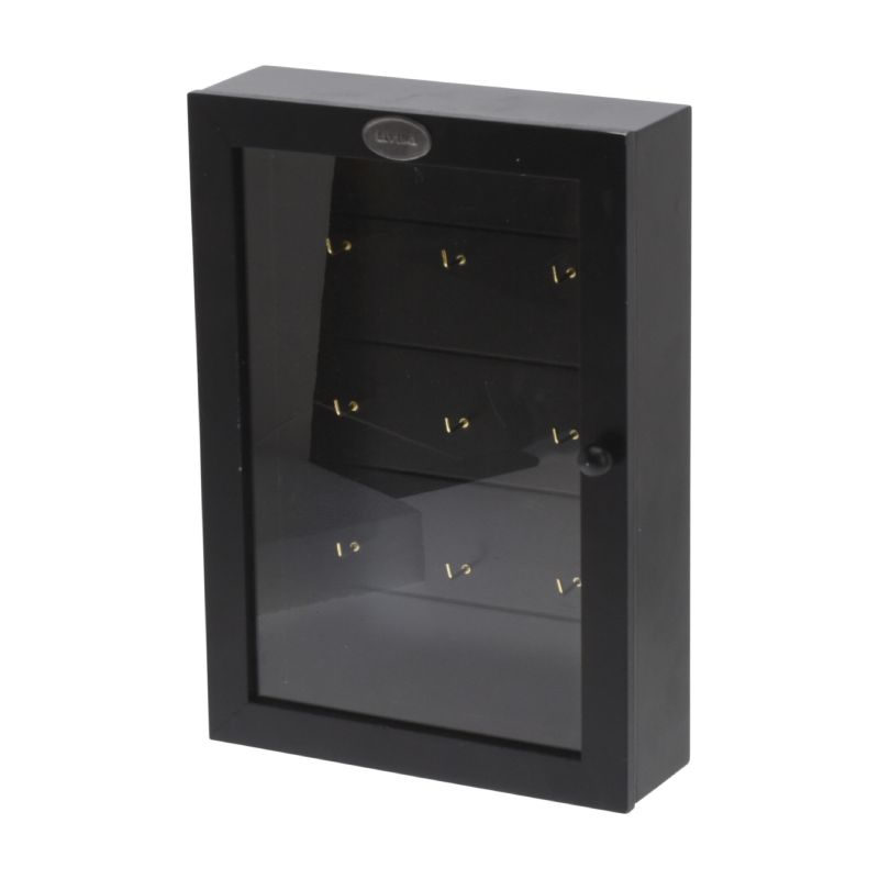 Стилна кутия за съхранение на ключове, подходяща за окачване на стена. Произведена е от MDF в цвят черен.