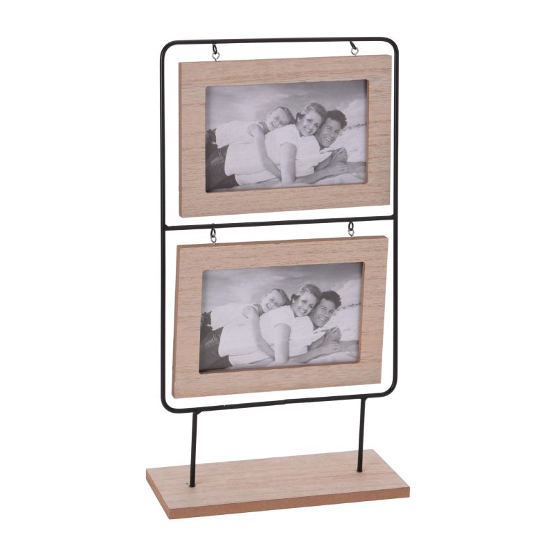 Модерна настолна рамка за два броя снимки, всяка с размери 10х15 см, произведена от дърво в комбинация от метал.