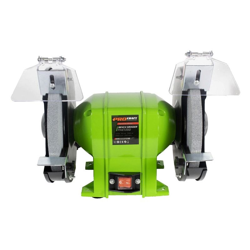 Шмиргел Procraft PAE1350 с мощност 350 W и диаметър на диска Ф200 мм. Предназначен е за заточване на домакински инструменти. Има два прозрачни защитни екрана, които предпазват от искри и прах. Въртящите се дискове с различни гранули са покрити с метални капаци, за да се предотвратят наранявания. Моделът разполага с удобен бутон за спиране и защита срещу прах. Има компактни размери и повишена производителност.