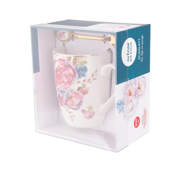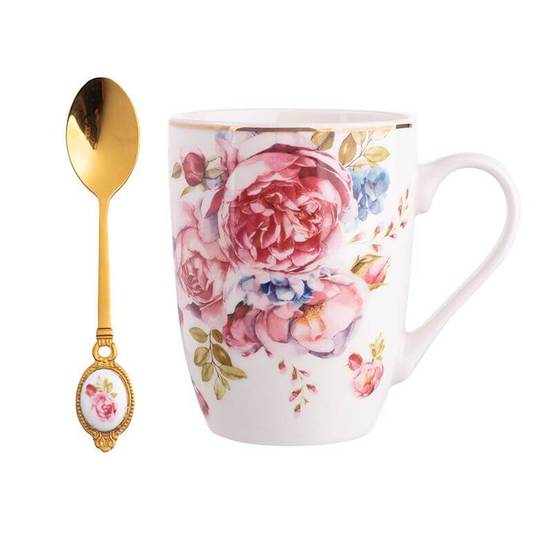 Комплект порцеланова чаша с лъжичка за сервиране на всякакъв вид горещи напитки. Може да се мие в съдомиялна машина. Чашата е декорирана със златен кант, който не позволява използването й в микровълнова печка.