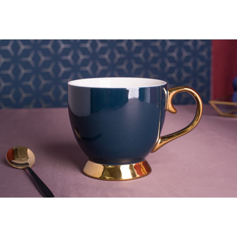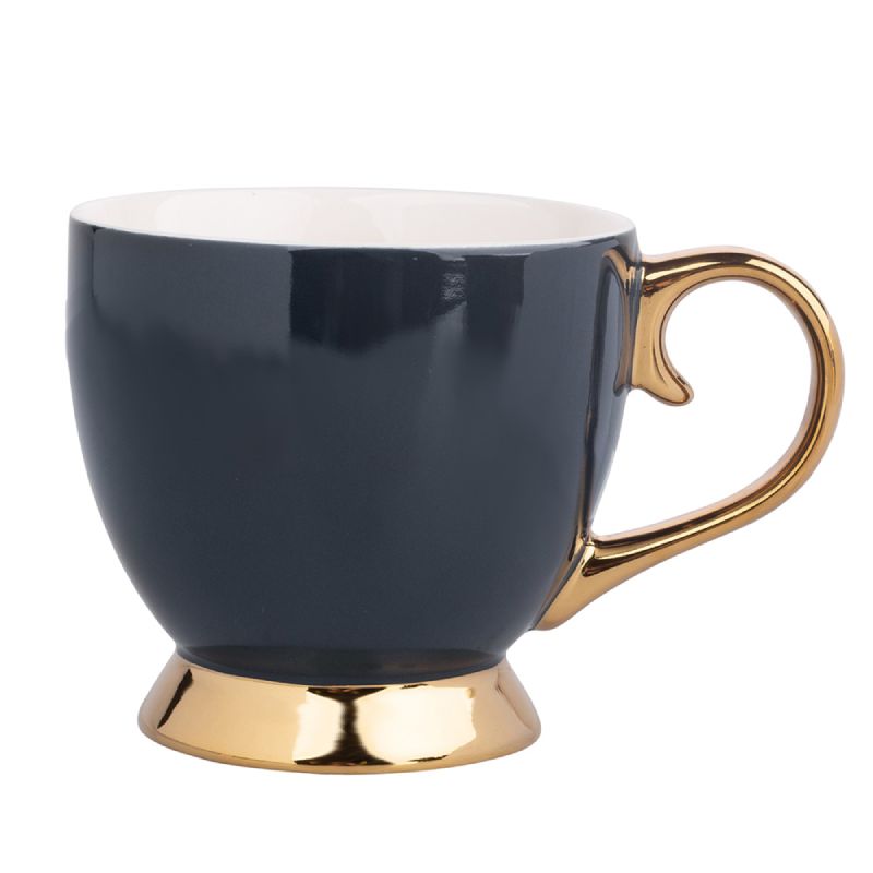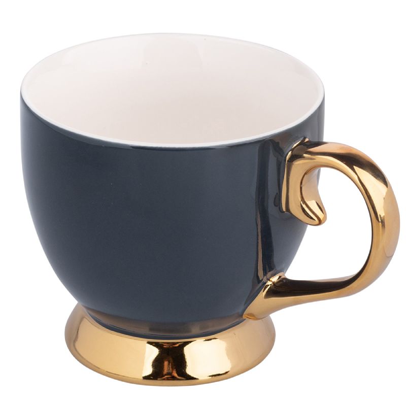 Порцеланова чаша със столче за сервиране на всякакъв вид горещи напитки. Чашата е декорирана със златна дръжка и слатно столче, които не позволяват поставянето й в микровълнова фурна, както и миенето в съдомиялна машина.