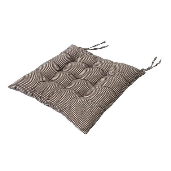 Възглавница за стол с размери 40 х 40 см. Изработена от полиестер/дунапрен и вата. Възглавницата е снабдена с връзки, с помощта на които ще я привържете към стола, за да не се изхлузва. Калъфката е без цип и не може да се сменя.