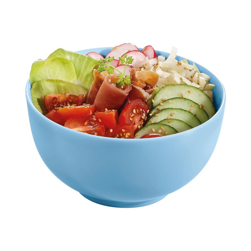Кръгла купа за салата, подходяща и за сервиране на плодове, миди, морски дарове и други. Купата е произведена от закалено стъкло – опал.