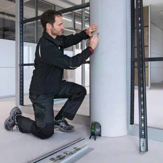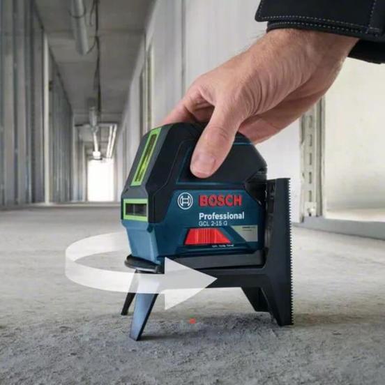Зелен линеен лазерен нивелир Bosch GCL 2-15 G има работен обхват 15 м. Зеленият лазер поддържа 100% видимост за човешкото око, докато при червения - видимостта е само 24%. Оборудван е със зелен лазерен диод, който повишава ефективността и издръжливостта. Подходящ е за работа в неблагоприятни светлинни условия. Има по-дълъг живот на батерията (по-малък разход на енергия в сравнение с досегашната технология). Притежава по-ниско топлинно излъчване.