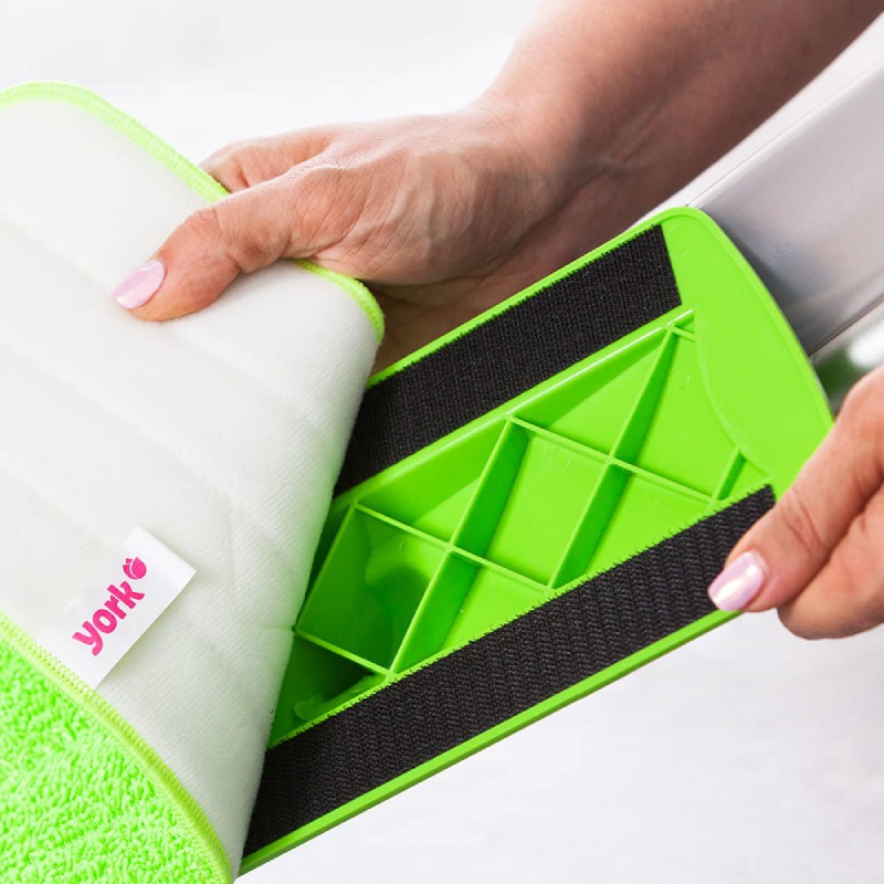 Мултифункционален комплект York Spray&Collect за почистване на подове, стени, прозорци и огледала. С помощта на York Spray&Collect ще почистите цялата баня за отрицателно време. Комплекта съдържа два вида дръжки и два вида накрайници с микрофибърни кърпи за почистване и подсушаване. И двата вида дръжки разполагат с контейнер за вода или почистващ препарат, както и спрей механизъм.
