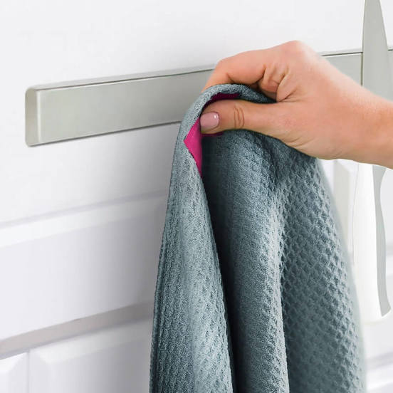Микрофибърна кърпа за почистване на прах, подсушаване, полиране на съдове и други ежедневни дейности в кухнята или навсякъде в дома. Вместо ухо за закачане на закачалка, кърпата разполага със силен магнит.