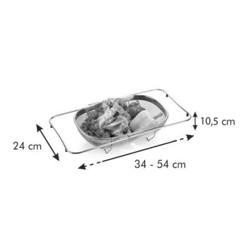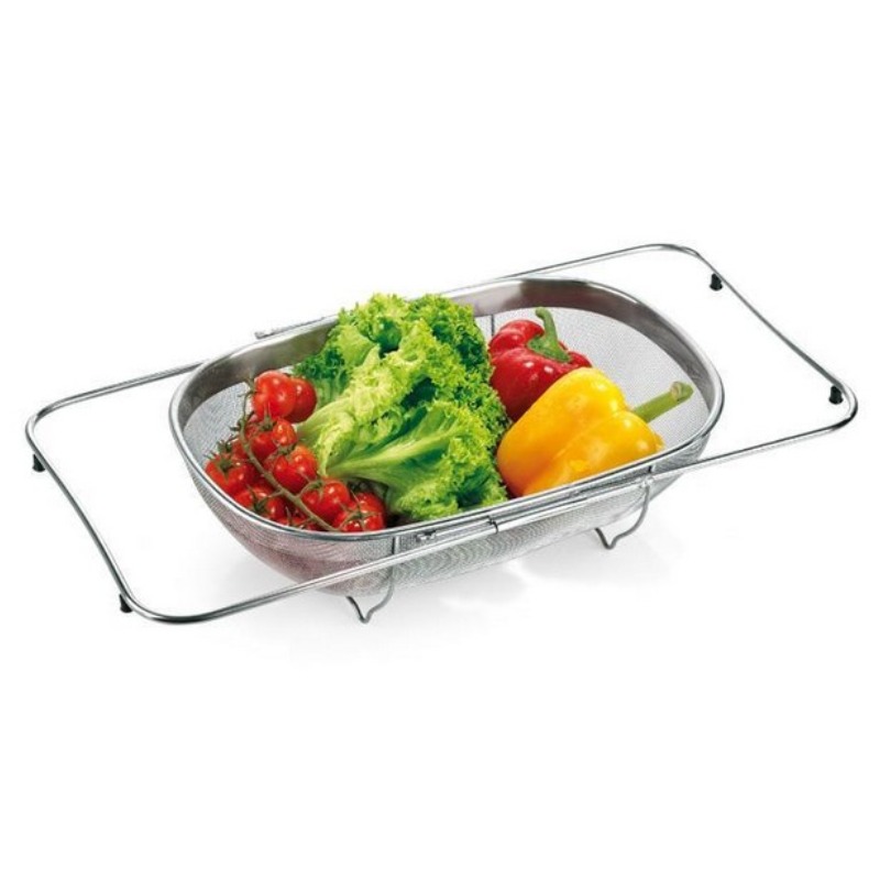 Серия Grandchef се отличава с високо качество на изработка и отличен дизайн за максимален комфорт в кухнята. Кошницата е незаменима щом става дума за лесно прецеждане и изплакване на тестени изделия, зеленчуци, плодове и други продукти. Изработена от висококачествена неръждаема стомана. Разтегателните дръжки от 34 до 54 см позволяват използването на кошницата с всяка кухненска мивка.