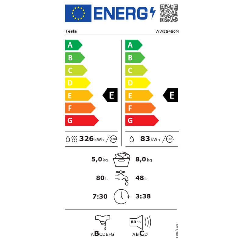 Пералня/сушилня WW85460M на марката TESLA. Уредът е с размери (В х Ш х Д) 85 х 59.5 х 56.5 см. Има капацитет на пране 8 кг и капацитет на сушене 5 кг.