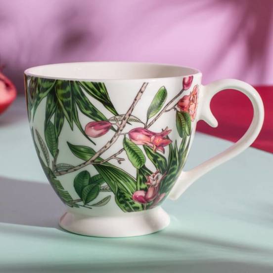 Порцеланова чаша със столче за сервиране на всякакъв вид горещи напитки – чай, горещ шоколад, мляко, кафе и други. Може да се мие в съдомиялна машина и да се поставя в микровълнова фурна. Порцелановата чаша е произведена по високи стандарти за качество. Съчетава се идеално с останалата кухненска посуда от същата серия.