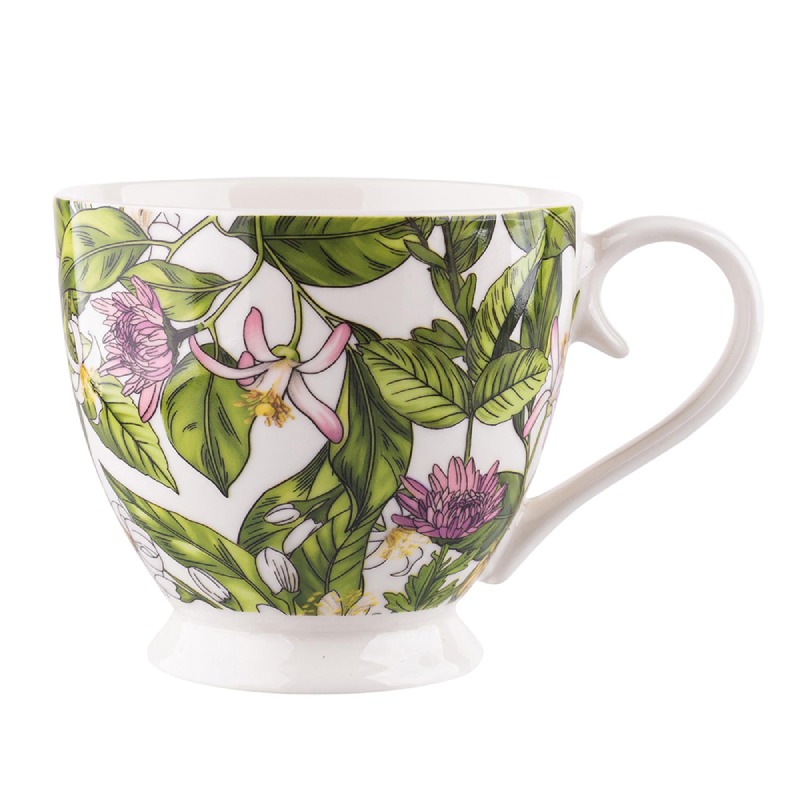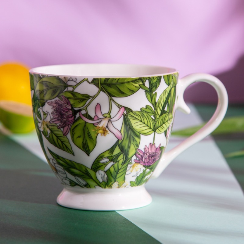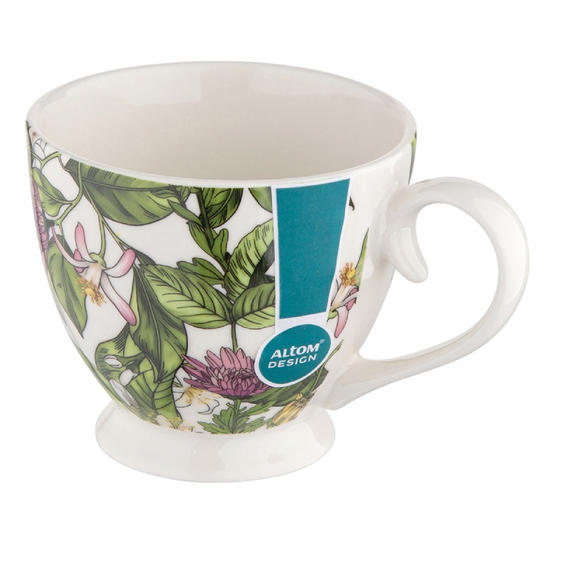 Порцеланова чаша със столче за сервиране на всякакъв вид горещи напитки – чай, горещ шоколад, мляко, кафе и други. Може да се мие в съдомиялна машина и да се поставя в микровълнова фурна. Порцелановата чаша е произведена по високи стандарти за качество. Съчетава се идеално с останалата кухненска посуда от същата серия.