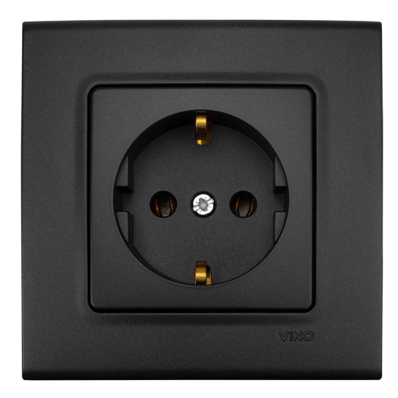 Единичен електрически контакт тип шуко в комплект с рамка от серията LINNERA LIFE на марката VIKO. Контактът е изработен от ABS пластмаса и е в цвят черен. Устойчив на UV лъчи.