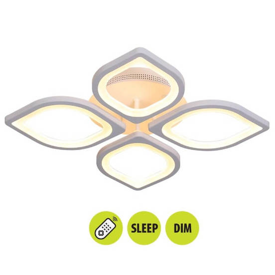 Мултифункционална LED плафониера в модерен стил, подходяща за интериорно осветление в хол, всекидневна или трапезария. Плафонът разполага с дистанционно управление, вграден димер за увеличаване и намаляне на светлината, нощен режим, както и множество функции. Предлага и избор между различни типове цветна температура – топла, неутрална и студена.