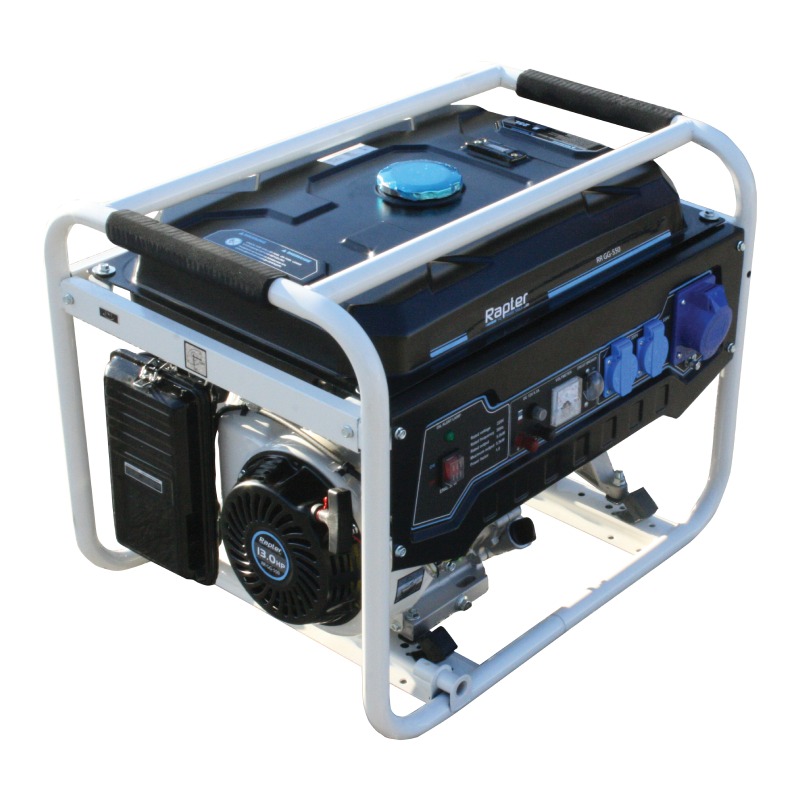 Бензинов монофазен генератор Rapter RR GG-550 e с максимална изходна мощност на двигателя 9.6 kW. и ръчно стартиране. Оборудван е с едноцилиндров, 4-тактов, с въздушно охлаждане, OHV двигател. Обемът на резервоара е 25 литра, а продължителността на работния цикъл е до 10 часа.