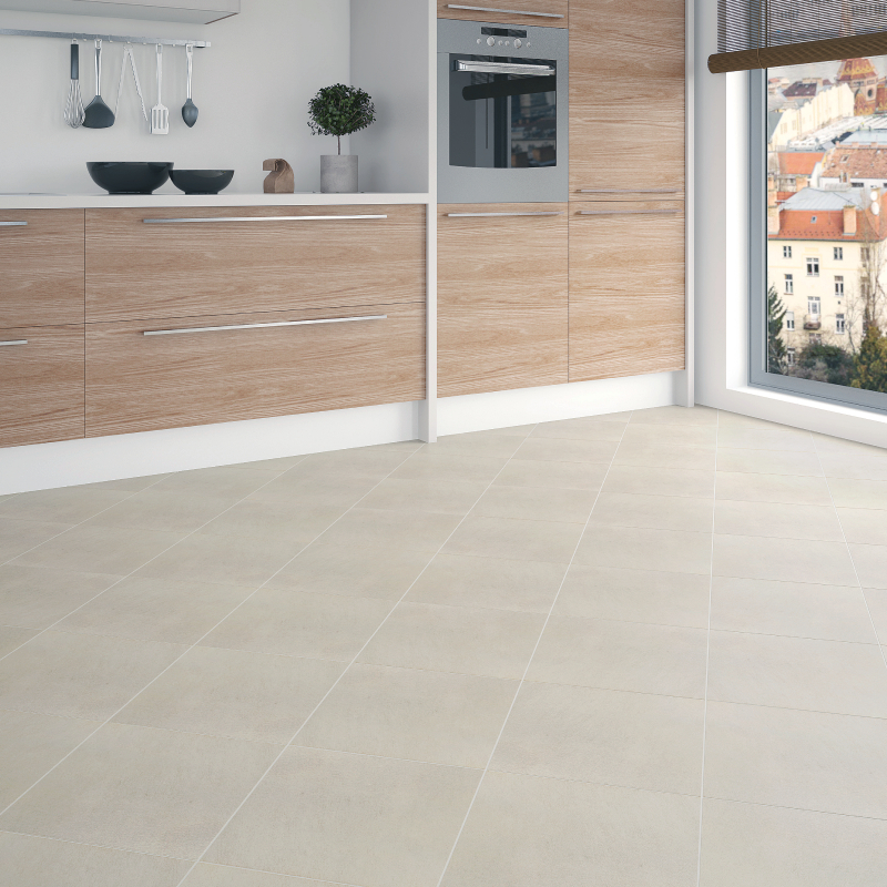 Гранитогрес от серия Дакар 8337 на марката KAI в бежов цвят и десен имитиращ цимент. Плочките са с размер 33.3 х 33.3 см и дебелина около 7.5 мм. Плочките са с гладка матирана повърхност. В един кашон се съдържат 15 броя плочки с покривна площ 1.66 кв.м.