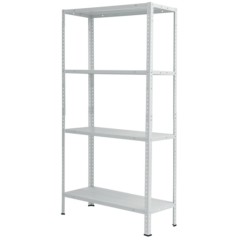Метален стелаж с 4 рафта и максимален капацитет на товароносимост на всеки рафт до 50 кг. В домашни условия стелажът може да се превърне в интересно и функционално интериорно решение за съхранение на буркани със зимнина или кутии с детски играчки например. Подходящ е и за монтиране на балкона или терасата, където удобно могат да бъдат съхранявани инструменти. Стелажът е подходящ и за монтиране в мазета/изби или килери. В производството и търговията стелажите от този вид са подходящи за излагане или складиране на стока. Моделът е прахово боядисан в бял цвят.