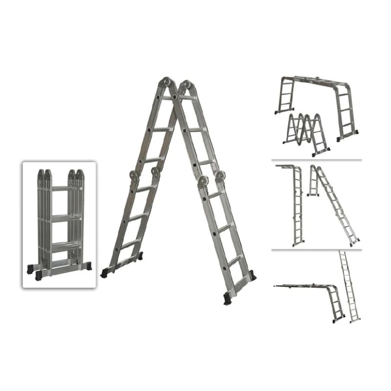 Универсална акуминиева стълба с 4 х 3 стъпала, максимална дължина 370 см и максимална товароносимост 150 кг. Акуминиевата стълба е подходяща за използване както от професионалисти, така и непрофесионално. Позволява сгъване в различни позиции за да бъде оптимално полезна във всяка сфера на работа.