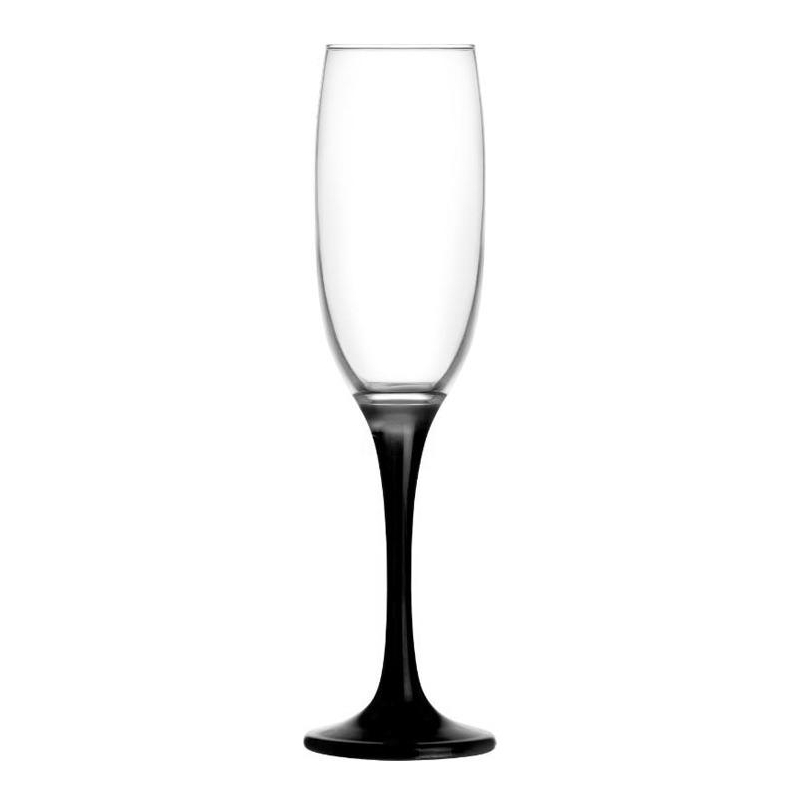 Комплект от 6 броя чаши за шампанско с черни столчета от серия Venue на LAV. Произведени са по високи стандарти за качество и са подходящи за миене в съдомиялна машина.