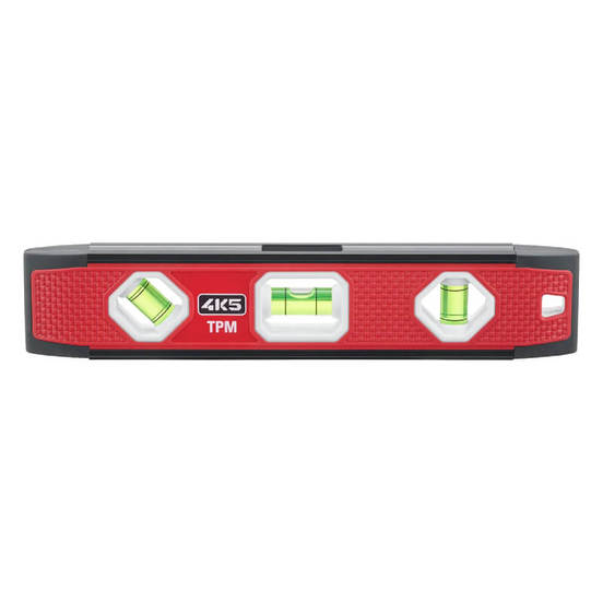 Магнитен нивелир TPM на 4K5 с 3 броя либели, които са видими от всички страни за прецизно подравняване на повърхности по хоризонтала, вертикала и дори под ъгъл до 45°. Нивелирът е произведен в удобна V-образна форма. Произведен е от висококачествена пластмаса с гумирани накрайници, които абсорбират вибрациите и натоварването по време на удар в следствие на изпускане на измервателния уред. Разбира се, за да бъде максимално удобен за употреба, нивелирът има магнитна основа за стабилно закрепване към метални повърхности.