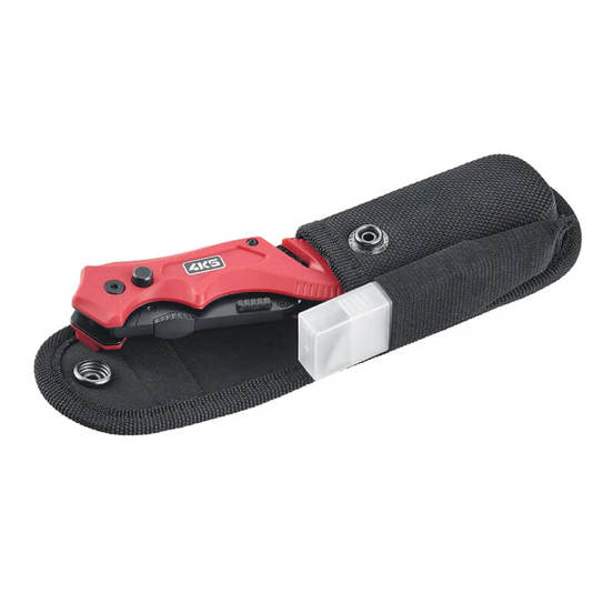 Сгъваем макетен нож TK300 на 4K5 с клипс за колан и в комплект с калъф. Този здрав сгъваем нож има остро острие от висококачествена стомана със сатенирана повърхност, което осигурява чисто рязане за прецизна работа. Ножът има бутон за заключване на острието.
