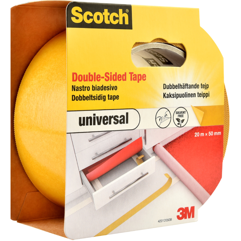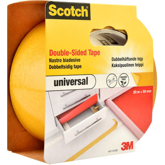 Двустранно лепяща лента за подови настилки на марката SCOTCH. Лентата е с широчина 50 мм и дължина 20 м. Предназначена за постоянен или временен монтаж на килими, мокети, изтривалки и др. Устойчива на разтворители.