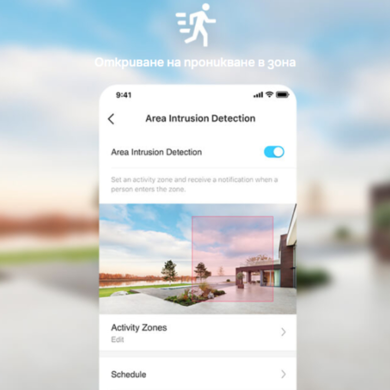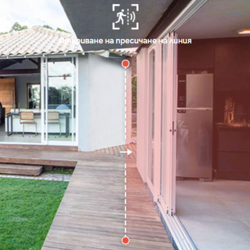 - Откриване на проникване в зона - през мобилното приложение може да изберете зона, която да се следи. Щом в зоната попадне движещ се обект, мобилното приложение ще ви извести.