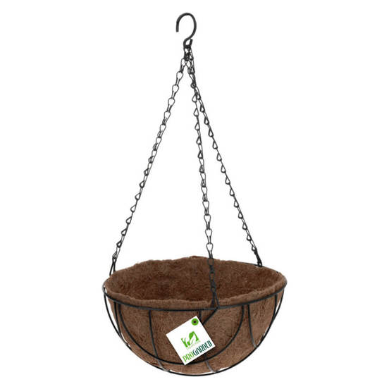 Красива висяща саксия за цветя във формата на кошница с диаметър ф25 см. Висящата саксия е изработена от естествени кокосови влакна с рамка от метал. Кокосовата саксия е подходяща за поставяне както на открито на верандата, терасата или балкона, така и на закрито вътре в жилищните помещения. Саксията е подходяща за всякакъв вид градински или стайни висящи растения.
