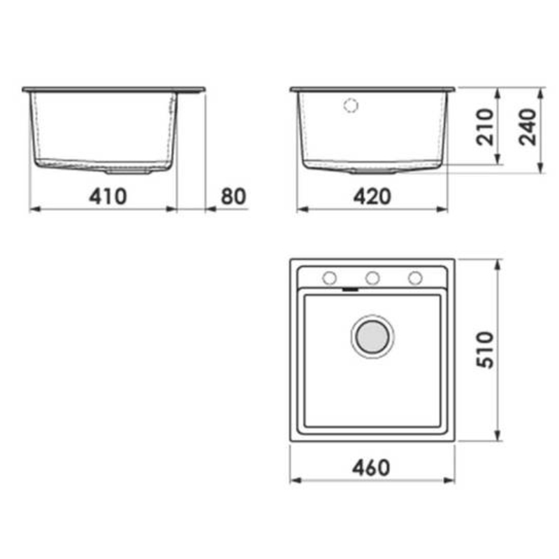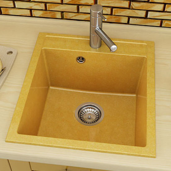 Единична кухненска мивка за вграждане FAT, изработена от граниксит с размер 51 х 46 см в цвят №349 Sandstone. Към комплекта е включен висококачествен италиански сифон за мивка с размер Ф90 мм.