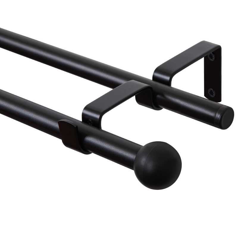 Двоен метален корниз за пердета и завеси серия Base на марката MARDOM. Тръбният корниз е с дължина 200 см и диаметър ф16 мм. Подходящ за всяка стая в дома.