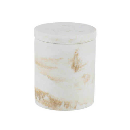 Универсален аксесоар за баня - чаша с капак серия Odos. Аксесоарът за баня е произведен от висококачествен материал полирезин, който представлява изкуствен акрилен камък, получен чрез втвърдяване на смоли. Материалът, използван за изработката на аксесоара за баня е без съдържание на вредни вещества. Аксесоарът за баня е подходящ за съхранение на бижута, аксесоари за коса, гримове, памучни тампони и други принадлежности.
