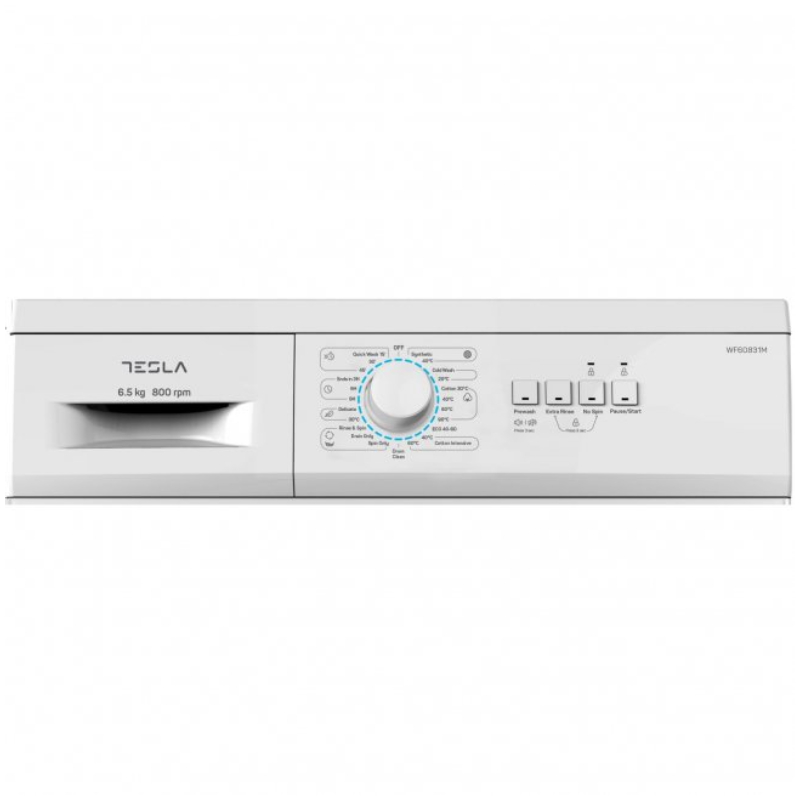 Перална машина WF60831M TESLA с предно зареждане и Slim дизайн, подходящ за по-малки жилищни помещения. Пералнята е с капацитет на пране 6.5 кг и с максимални обороти на центрофугата 800 об./мин. Пералната машина разполага с голям LED дисплей, където се визуализират зададените настройки и параметри на изпиране.