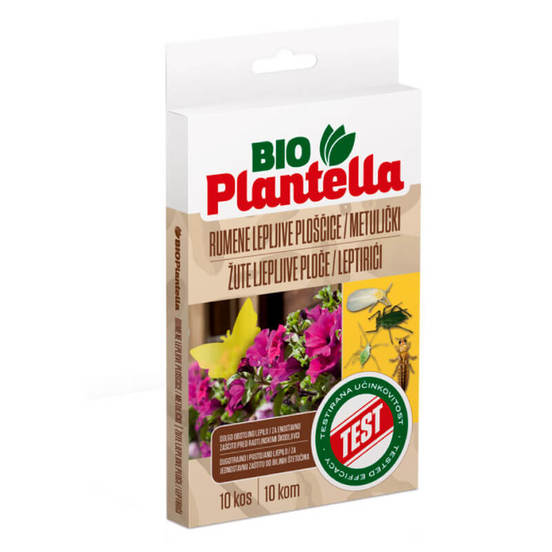 Лепящи био пеперуди против насекоми на марката PLANTELLA. Продуктът представлява лепящи листове с декоративна форма на пеперуди за механична защита и контрол срещу насекоми. Предназначени за балконски и стайни растения.