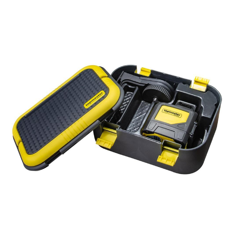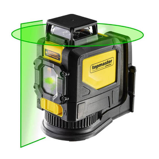 Професионален лазерен нивелир с една вертикална и една хоризонтална 3D проекция. Зелен линеен лазерен нивелир TopMaster е с обхват 40 м и диапазон на самонивелиране +/- 4°. Захранва се от 4 броя батерии от тип AA. Зеленият лъч осигурява до 4 пъти по-ярка за човешкото око светлина. Има степен на защита IP54, която позволява работа в тежки работни условия. Лазера има една вертикална и една хоризонтална 3D проекция и режим на самонивелиране. Доставя се в комплект с 4 бр. батерии 1.5 V, магнитна стойка и кутия зя съхранение.