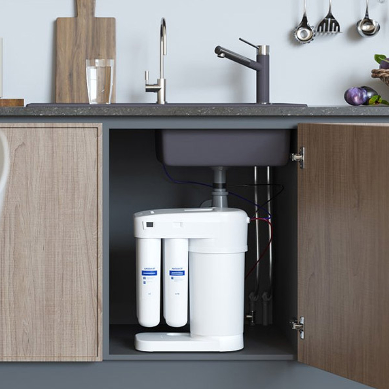 - Тип на системата: За вграждане в кухненския шкаф (под мивката)