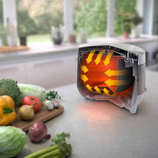 Вътрешният съд е 5-слоен, изработен от висококачествена алуминиева сплав, подсилен със специалното покритие Maifanshi. Това покритие гарантира равномерно разпределение на топлината и предотвратява залепването на храната, като същевременно увеличава устойчивостта на съда срещу надраскване и износване. В комбинация с интелигентната крива за готвене и сензорите за температура, уредът автоматично адаптира процеса спрямо избраната програма, което прави готвенето бързо, лесно и без риск от грешки. Philips HD4713/40 предлага и множество удобства за ежедневна употреба: таймер с предварително задаване до 24 часа, функция за автоматично поддържане на топлината до 12 часа, както и лесен за почистване дизайн със сменяем вътрешен капак. Така храната ви винаги ще е готова в точното време и ще остане топла и свежа дълго след приготвянето. Със своята комбинация от функционалност, здравина и лекота на работа, този мултикукър е перфектно решение за всяко домакинство, което търси удобство и професионални резултати в кухнята.