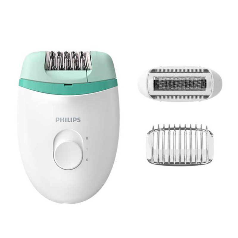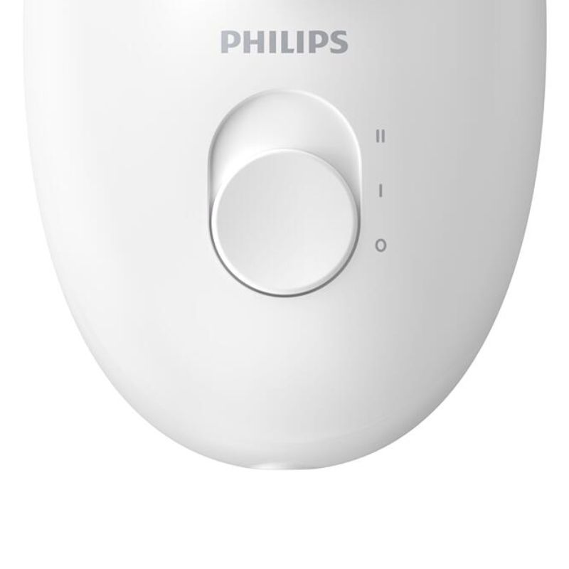 Епилатор BRE245/00 на марката PHILIPS. Предназначен за бръснене на крака. Компактен уред с кабел, 2 настройки за скорост, за да хване по-тънки и по-дебели косми, бръснеща глава и гребен за гладко бръснене.