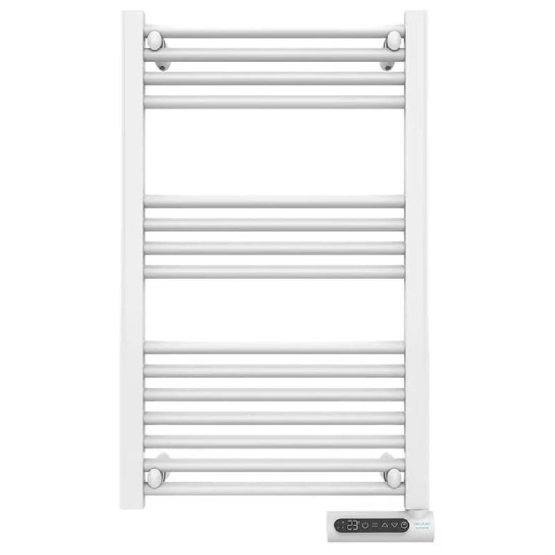 Стенен отоплител-лира за баня с флуид 9100 на CECOTEC. Електрическата лира за баня е с мощност 500 W. Разполага с голям LED дисплей, на който се визуализират зададените настройки и стойности. Управлението на лирата за баня става чрез дистанционно управление или чрез сензорни бутони.