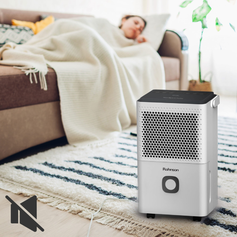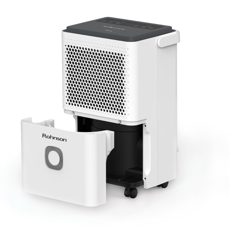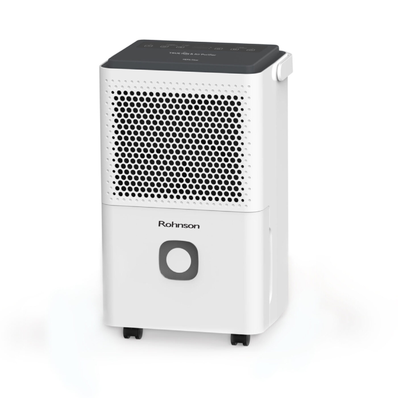 Обезвлажнител R-91312 на марката ROHNSON има капацитет на изсушаване на въздуха от 12 литра на ден и е подходящ за помещения до 60 кв.м. Разполага с филтър за прах, както и висококачествен HEPA филтър. Благодарение на HEPA филтърът ще се наслаждавате на пречистен въздух в помещението докато уреда работи. HEPA филтъра на обезвлажнителя улавя над 90% от финните прахови частици във въздуха, а йонизиращата функция се грижи за елиминирането на бактериите във въздуха