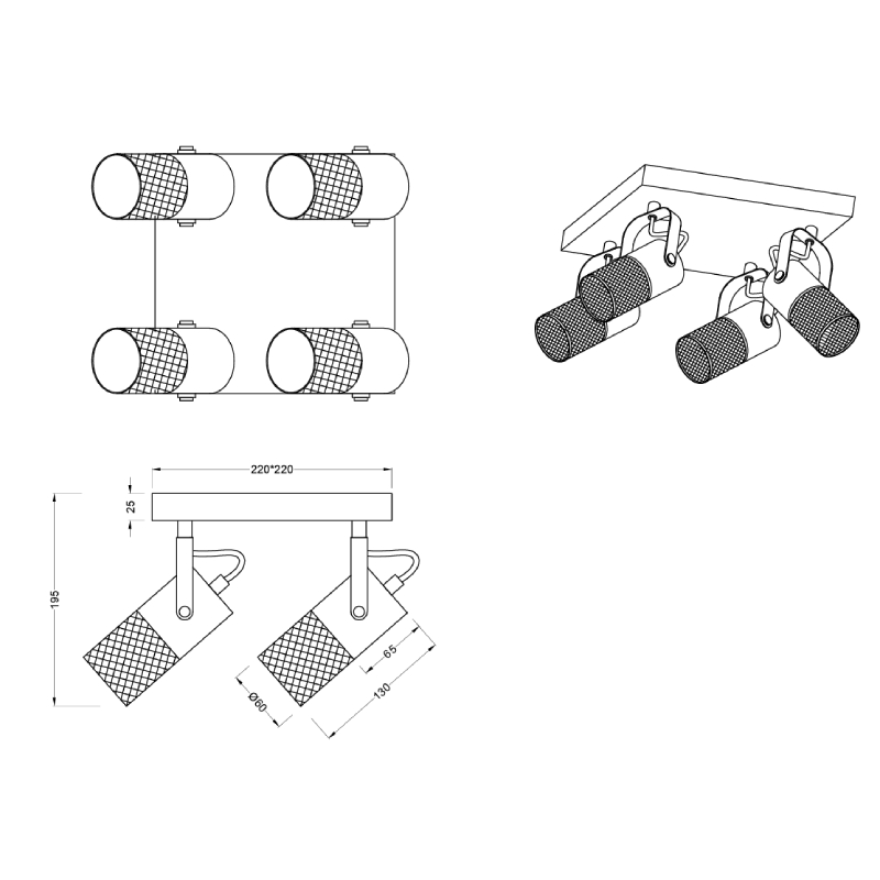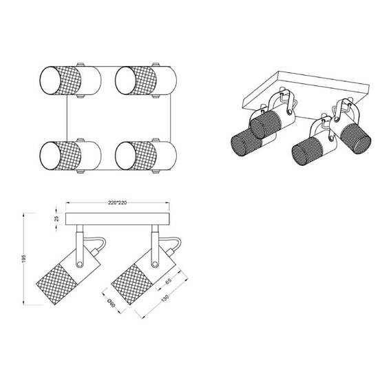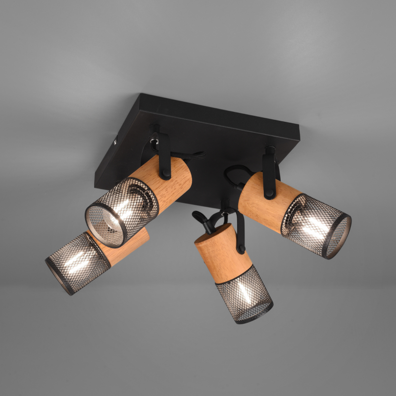 Осветително тяло Tosh на марката TRIO с мощност 40 W и фасунга 4 х E14. Осветителното тяло от тип спот с насочваща светлина е предназначено за стационарен монтаж на таван. Свързва се диреткно към електрическата мрежа чрез лустер клема. Със своя модерен дизайн, четворният спот е подходящ избор за осветление в спалня, всекидневна, коридор, кухня или офис.