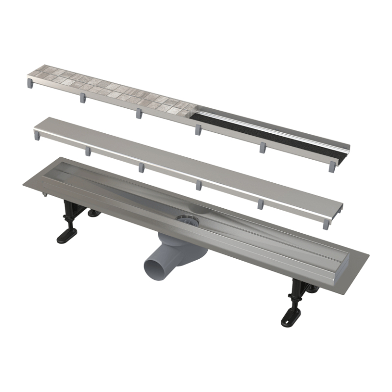 Във вътрешната част на тялото на линейният подов сифон за баня има наклон, който гарантира перфектно оттичане без задържане на вода. Максималният дебит на сифона е 50 л/мин. Разбира се, сифонът за баня разполага и с воден затвор, който гарантира защита от неприятни миризми.