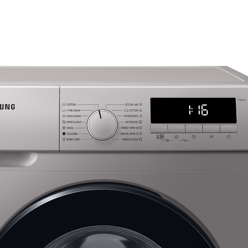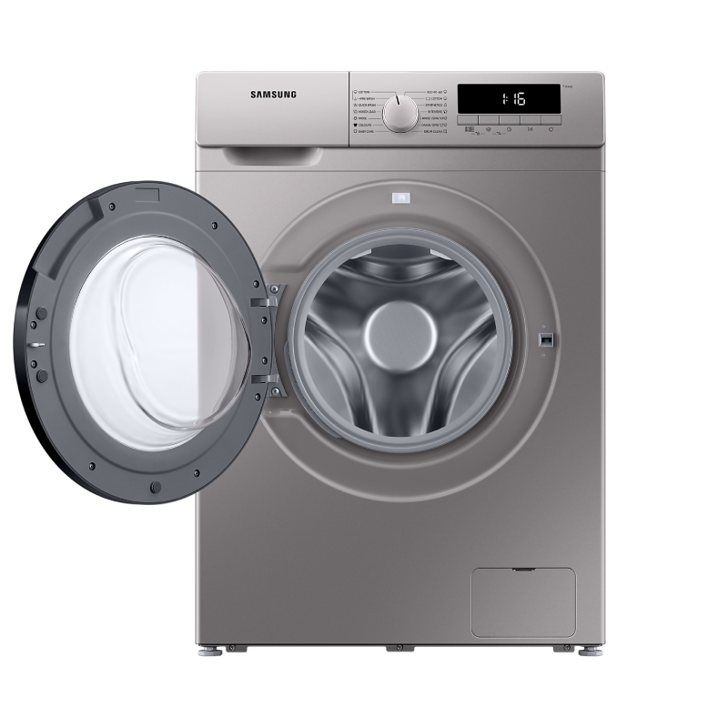 Свободностояща перална машина WW80T304MBS на SAMSUNG с капацитет на изпиране 8 кг, регулиране на оборотите и тиха работа. Дигиталният инверторен мотор на пералнята използва силни магнити за по-тиха и по-мощна производителност, но консумира по-малко енергия от стандартния универсален мотор. Елиминирайки употребата на четки, тази технология осигурява изключителна издръжливост на мотора на мералната машина.