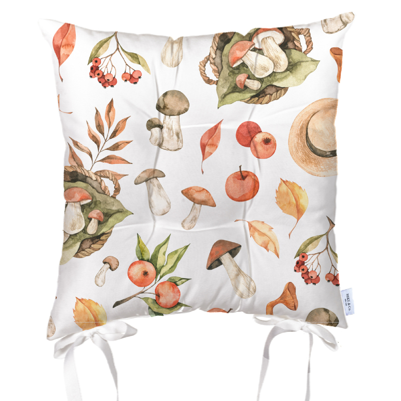 Декоративна възглавница за стол с есенен десен. Възглавницата е с размер 43 х 43 см и произведена от полиестер, дунапрен и вата. Калъфката е без цип и не може да се сменя.