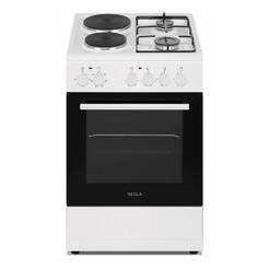 Комбинирана готварска печка CM5220SW на марката TESLA. С 2 котлона на газ и 2 котлона на ток. Печката е с обем на фурната 43 л и размери (Ш х В х Д) 50 х 83 х 60 см.