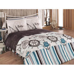 Двоен спален комплект в 4 части на марката AKHOME. Изработен от висококачествен плат Ранфорс - 100% памук. Спалният комплект се състои от чаршаф, плик и 2 броя калъфки за възглавница. Частите са в щампиран десен.