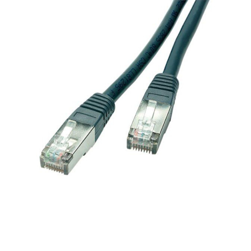 Мрежов LAN кабел с екранирани конектори RJ45/RJ45 и с дължина 1 метра. LAN кабелът е в сив цвят.