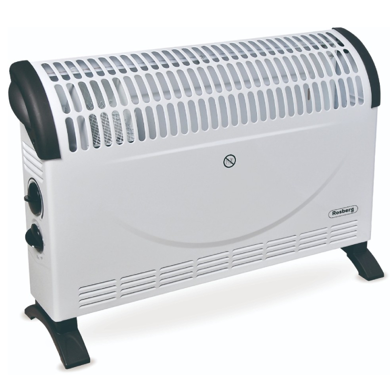 Подов конвектор R51974AТ на марката ROSBERG. Конвекторът е с мощност 2000 W и може да работи на 3 степени. Разполага с турбо вентилатор за принудителна конвекция. Уредът е снабден с функции за автоматично изключване и защита от прегряване. Цвят: бял.