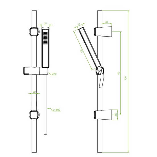 Тръбно окачване Polla с шлаух, ръчен душ и държач цвят злато 17357 LAVEO
